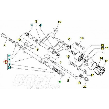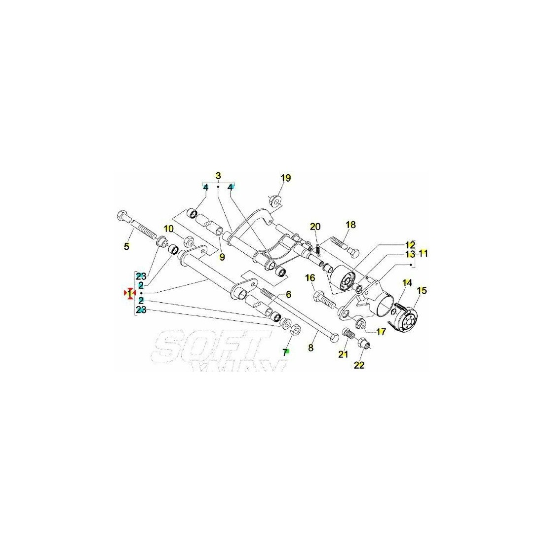 (R.7373) Vendo braccetto oscillante lato telaio nuovo per Piaggio Liberty - Typhoon - Mp3 125 - 250 - 300 - 500 cc dal 2005 con telai M38 - M47 - M63 - M64 - M65 - P38 e con codice Piaggio 56411R o ex 668532 , per applicazioni ed esploso vedere foto