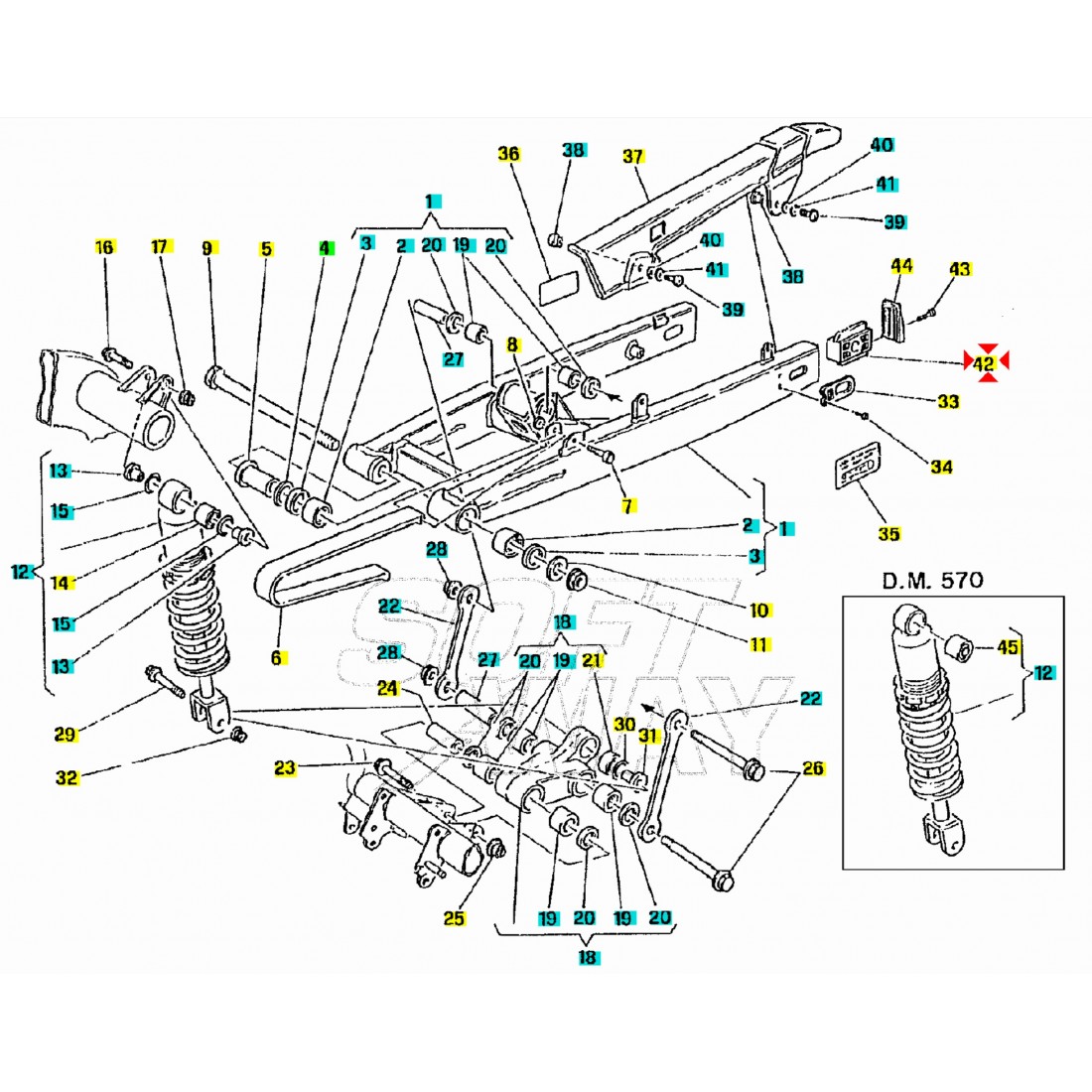(R.16512) Vendo tendicatena nuovo per Cagiva River - Supercity - W8 - W12 - W16 - Freccia C12 con codice Cagiva 800059082 , per applicazioni ed esploso vedere foto