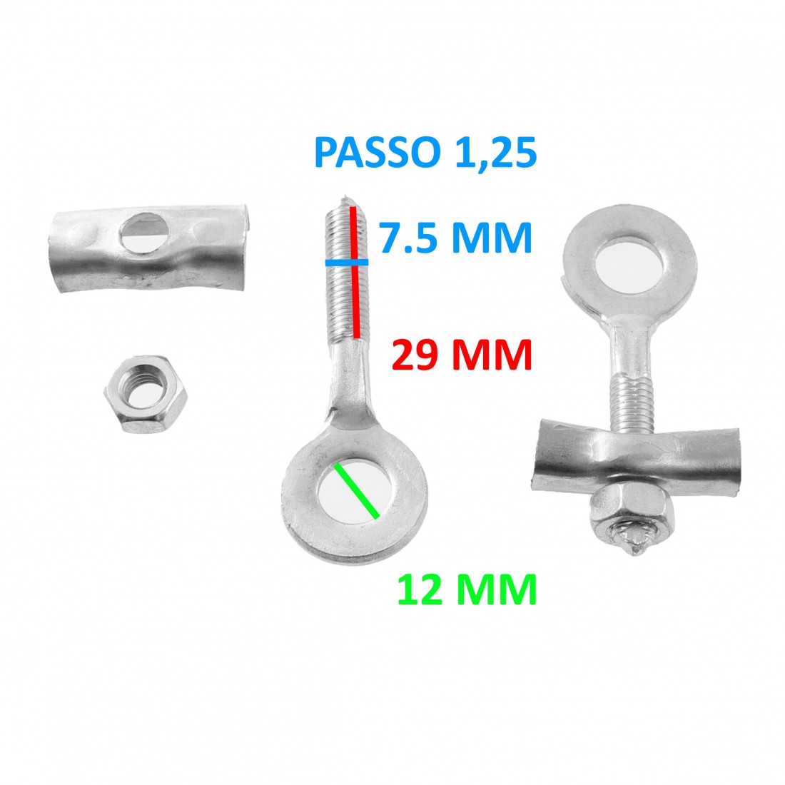 (R.14507) Vendo coppia tendi catena nuovi per ciclomotori vari epoca con lunghezza filettatura 29 mm e diametro vite 7,5 mm con passo 1,25 e diametro foro 12 mm , il prezzo si intende per singola coppia , più coppie disponibili , per misure vedere foto