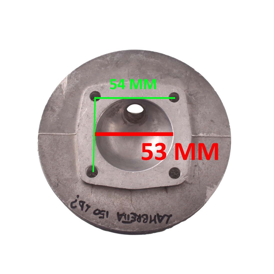 (R.22706) Vendo testata del cilindro usata per Lambretta D 125 dal 1956 - LD 125 con diametro cupola da 53 mm e interasse fori di fissaggio 54 mm , per misure vedere foto