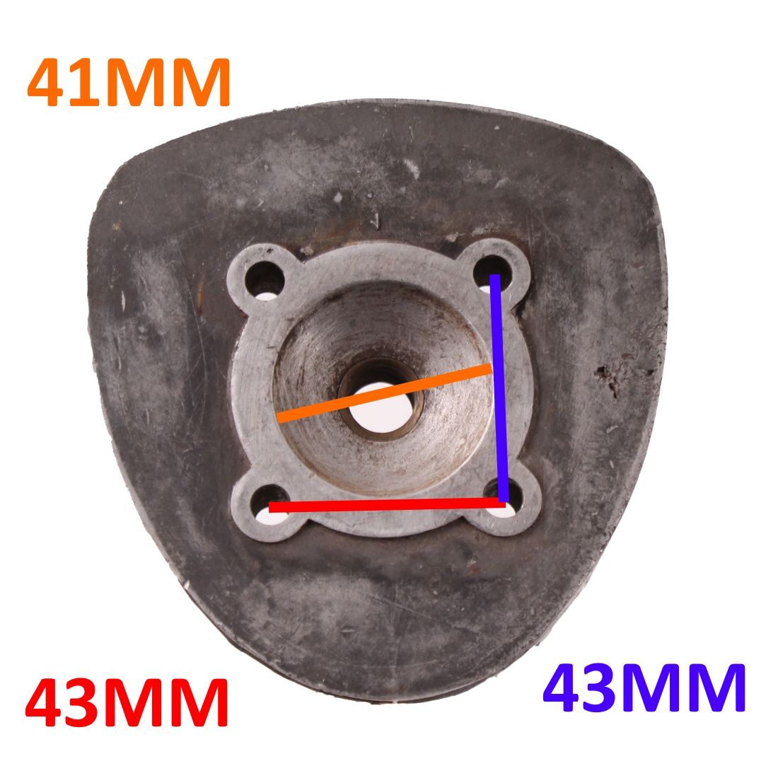 (R.24557) Vendo testata di cilindro usata con interasse 43 mm e camera di scoppio 41 mm peer ciclomotori vintage di cui non conosciamo il modello , per misure vedere foto