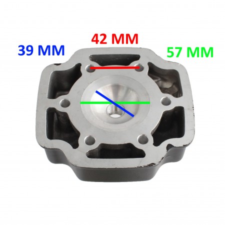 (R.14419) Vendo testata cilindro nuova per Gilera RC 125 cc e KK KZ 125 cc con codice Gilera 316429 marchiata 980342 di colore nero con diamentro camera di scoppio 39 mm e interasse fori 42 mm , per misure vedere foto