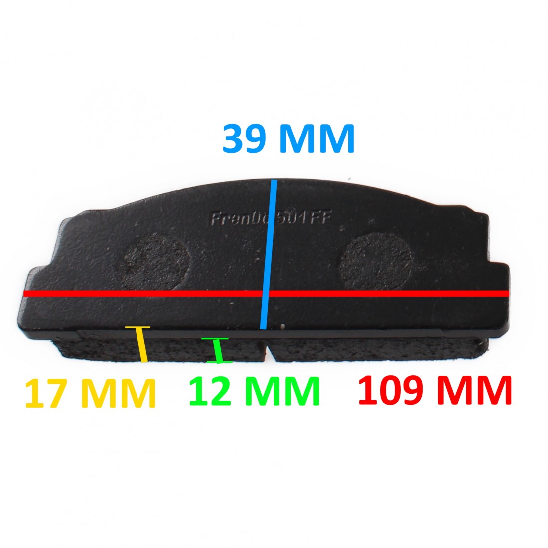(R.14583) Vendo serie 4 pastiglie freno nuove per Fiat 124 - 125 - 1100 R - 850 marca Frendo con codice 710035 e codice Fiat 4434817 - 5888573 marchiate FrenDo 501 FF con lunghezza piastra 109 mm e spessore pastiglia 12 mm , il prezzo si intende per il kit da 4 , per misure vedere foto