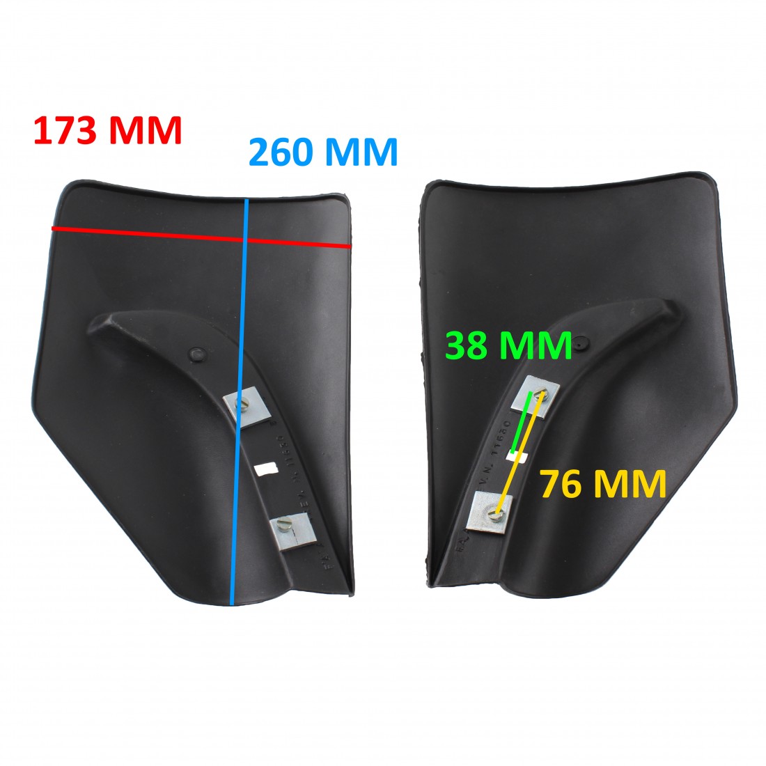 (R.15148) Vendo coppia paraschizzi nuovi per auto varie marca FAA con codice 40 marchiati 11630 B/78 di colore nero con lunghezza 260 mm e larghezza 173 mm con segni di magazzinaggio , il prezzo si intende per la coppia , per misure vedere foto