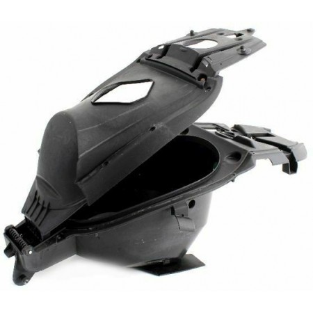 (R.3707) Vendo fondo sella usato per Aprilia SR R Factory con codice fondo sella AP8229401 o 8229401 completo con bauletto portacasco in plastica nera con codice bauletto porta casco 8268041 o AP8268041, per applicazioni vedere foto