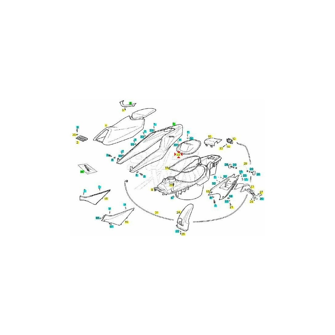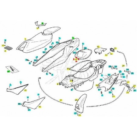 (R.7509) Vendo coperchio nuovo del vano porta casco per Derbi GP1 e GP1 Race 50 cc con telai PR1A1A dal 2005 in plastica di colore nero con codice Derbi 862733 o 00G0180221 , per applicazione ed esploso vedere foto