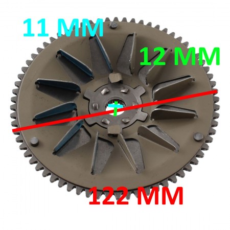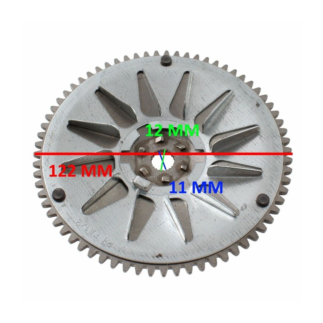 (R.13144) Vendo puleggia variatore fissa da 69 denti con turbine nuova senza fori intorno al foro centrale per Peugeot Buxy 50 cc dal 1994 - Speedake 50 cc dal 1995 - SV Geo 50 cc dal 1991 - Zenith 50 cc dal 1994 - Speedfight 50 e 100 cc - XFight - Vivacity marchiata PM FA1/2 con codice Peugeot 732801 con boccola dentata , per misure vedere foto