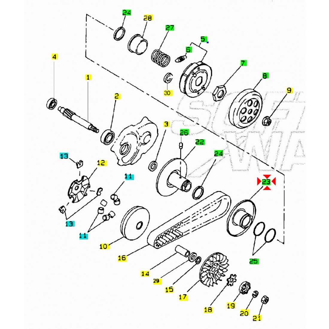 (R.16488) Vendo correttore di coppia FBM nuovo per Yamaha BM'S - CS - CW - YN - YQ 50 cc dal 1995 con codice 100340050 , per applicazioni ed esploso vedere foto