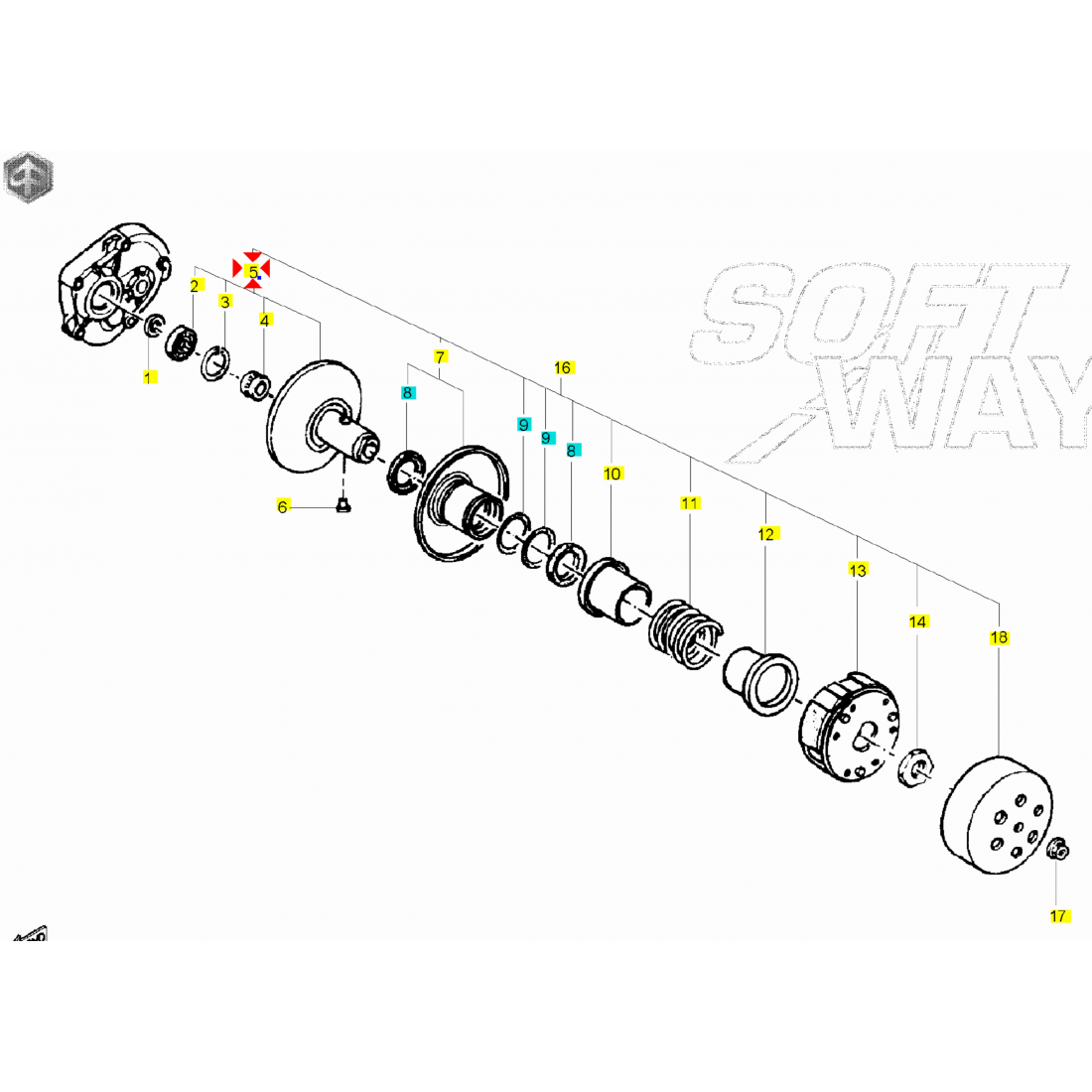 (R.20643) Vendo semipuleggia con boccolo fisso nuova per scooter Piaggio 50 cc prime serie con rulli da 16 tipo Free - Zip - Sfera - Quartz - Nrg - Ntt - Vespa ET2 dal 1992 al 2005 con codice simile Piaggio 430190 e con diametro esterno puleggia 127 mm , per misure con applicazioni e spaccato vedere foto