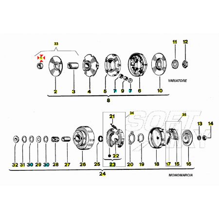 (R.24629) Vendo distanziale variatore nuovo per Piaggio Ciao - Ciao Mix - Si - Grillo - Superbravo - Bravo - Boss con codice Piaggio 103241 , per applicazioni e spaccato vedere foto