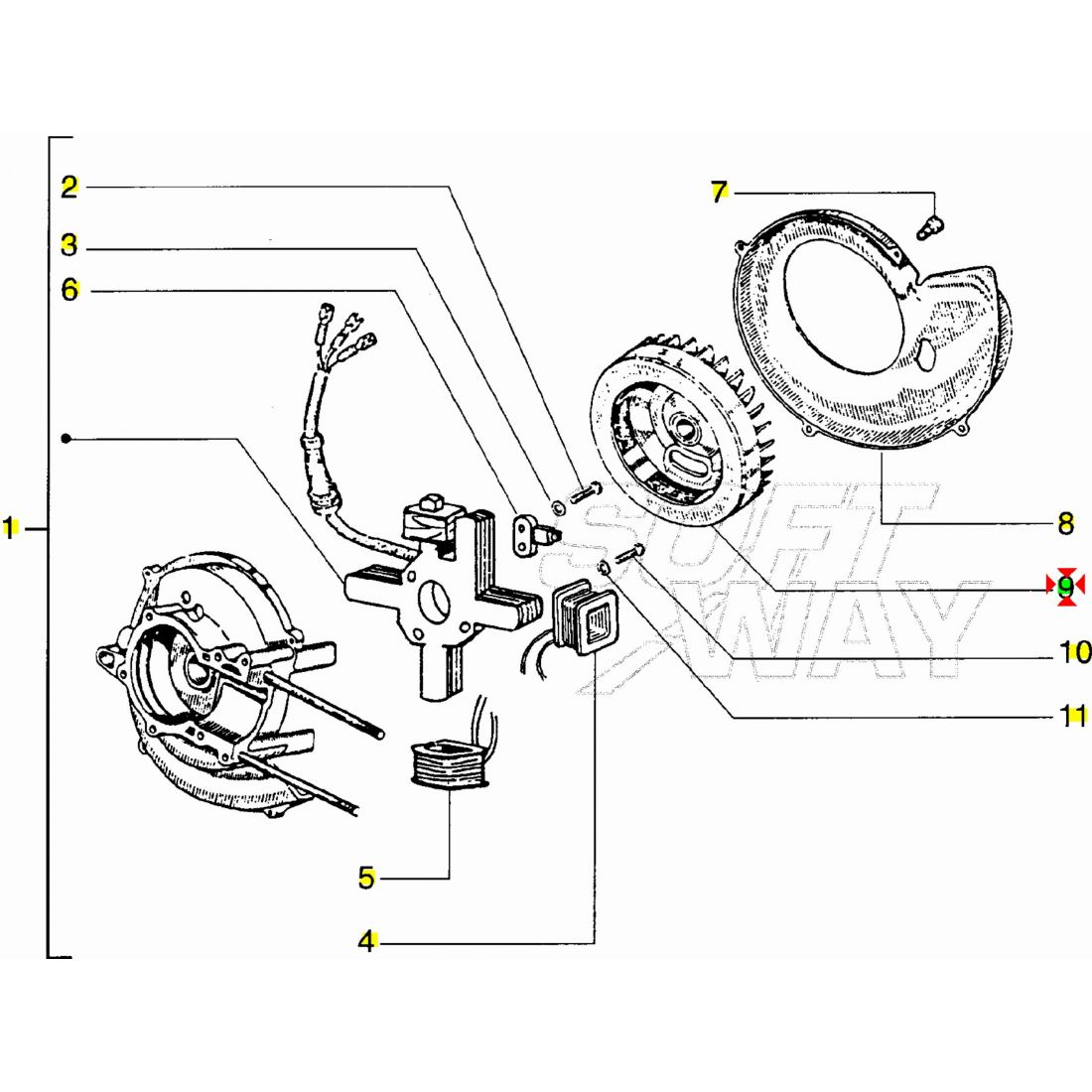 (R.22231) Vendo volano elettronico originale Piaggio con codice 2526093 per Piaggio Ciao - Grillo - Si FL2 - Si MIX , disponibili più varianti . per applicazioni e spaccato vedere foto :