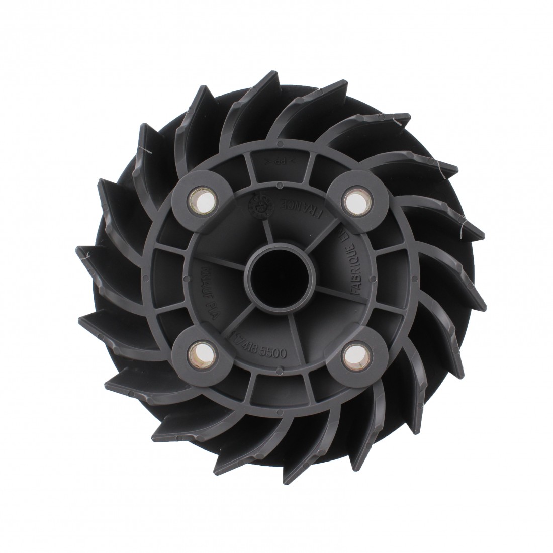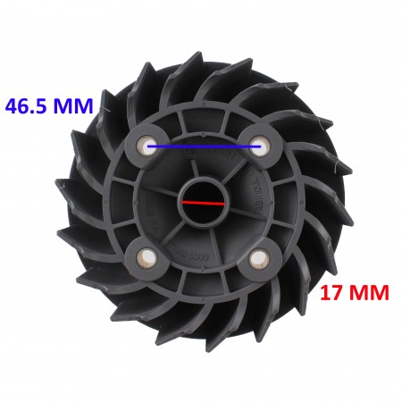 (R.14760) Vendo ventola raffreddamento volano nuova per Peugeot Buxy dal 1994 - Elyseo dal 1999 - Speedake dal 1995 - Speedfight dal 1997 - Squab dal 1995 - Vivacity dal 1994 - Zenith dal 1994 con codice Peugeot 741855 con interasse 46.5 mm e con diametro foro cieco centrale 17 mm , per misure vedere foto