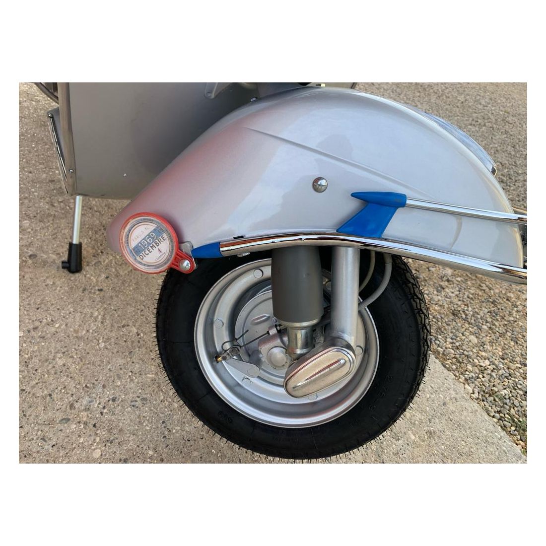 (R.21058) Vendo supporto portabollo vintage nuovo al parafango anteriore in alluminio per Piaggio Vespa senza vite di fissaggio , il prezzo si intende per singola coppia come da foto , foto della Vespa ad uso dimostrativo