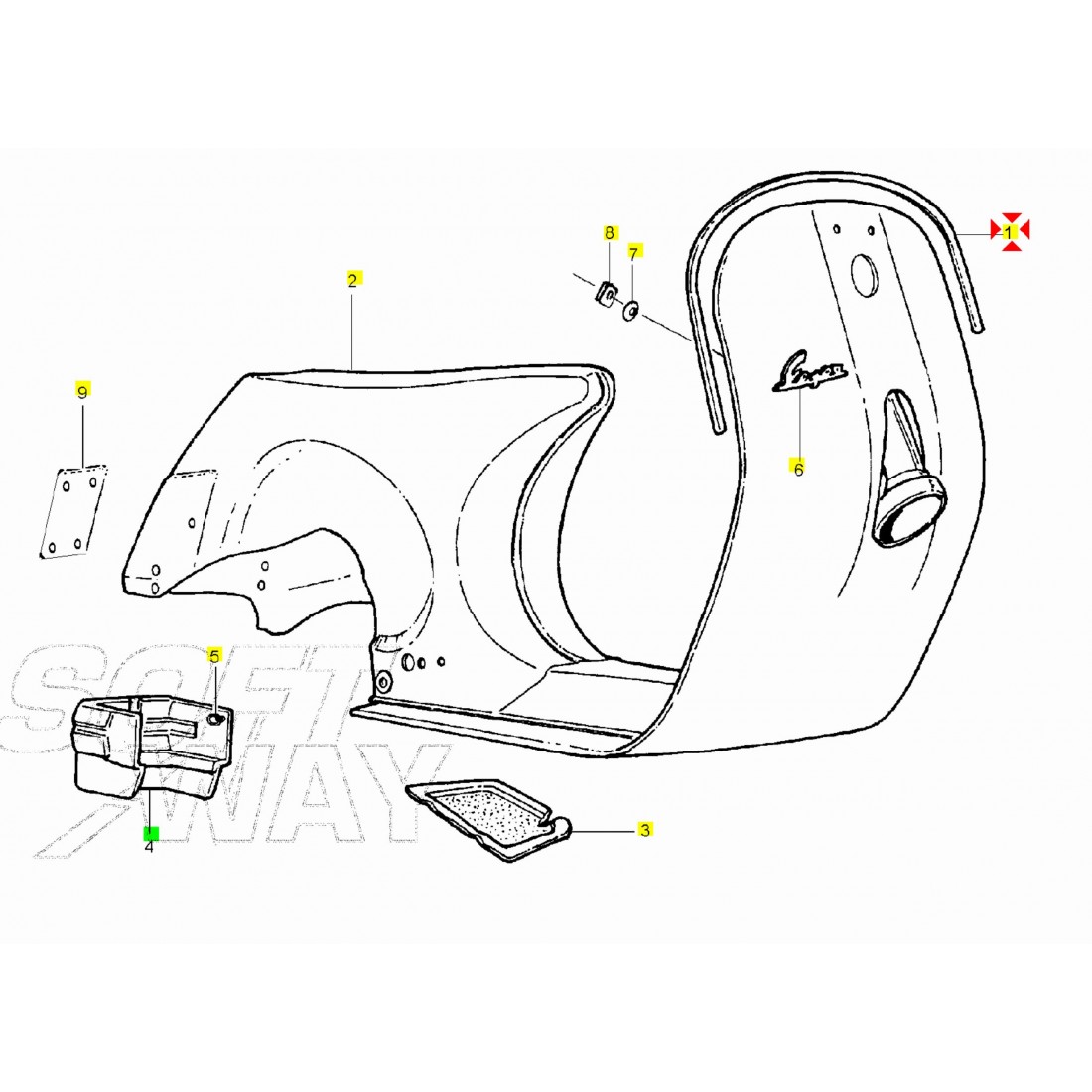 (R.21452) Vendo bordo scudo nuovo in plastica di colore argento satinato per Piaggio Vespa PX e PXE 125 e 150 cc simile a codice Piaggio 574682 , per applicazioni e spaccato vedere foto