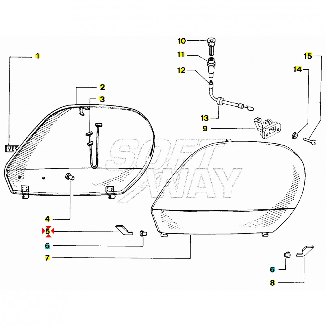 (R.14061) Vendo elemento anteriore cerniera sportello destro nuovo per Piaggio Vespa DL 50 e 125 cc dal 1989 - FL2 HP e Automatica 50 cc dal 1990 - Vespa N 50 cc dal 1989 - Vespa PK 50 cc dal 1982 - PK XL - Plurimatic - Rush 50 e 125 cc dal 1985 con codice Piaggio 241232 e con leggeri segni di magazzinaggio , per applicazioni vedere foto
