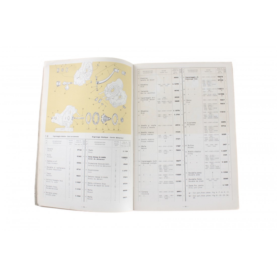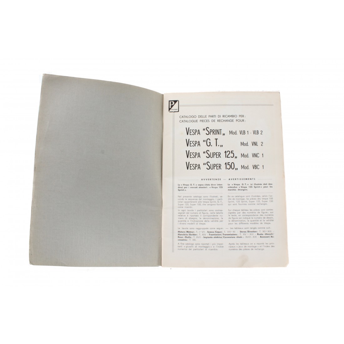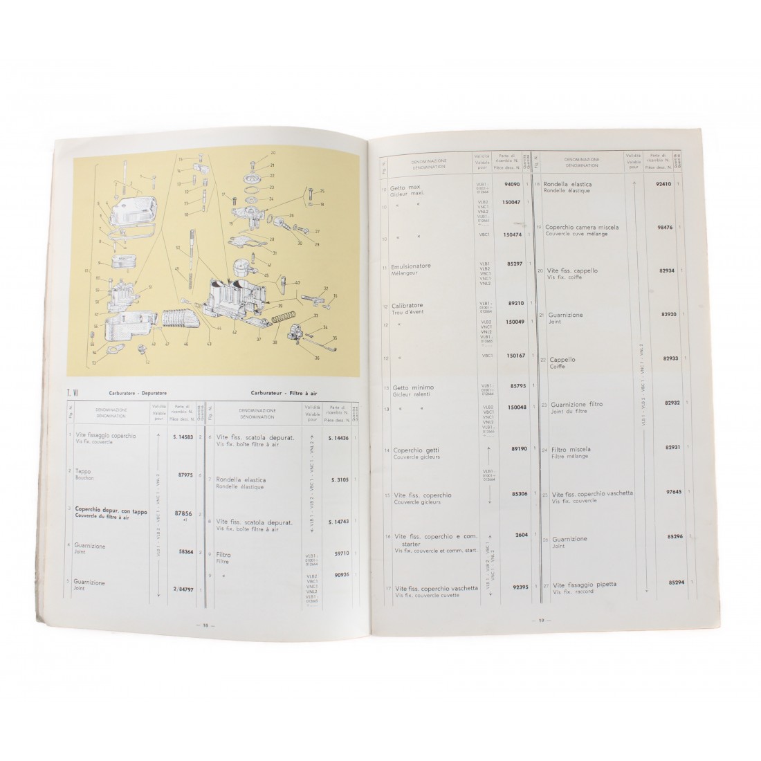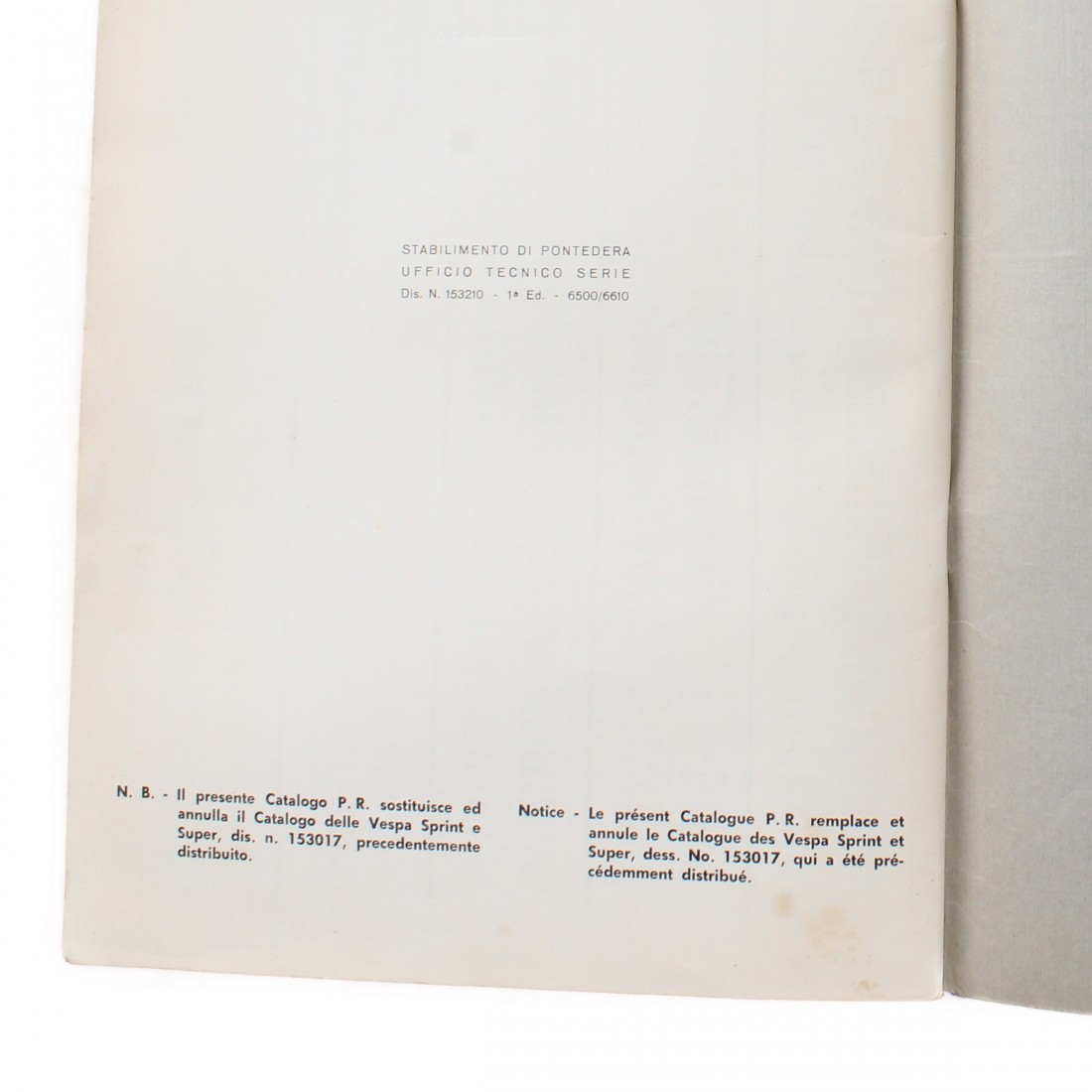 (R.14896) Vendo prontuario parti di ricambio con esplosi usato pari al nuovo originale epoca Piaggio non riproduzione attuale per Vespa Sprint VLB1 VLB2 - GT VNL2 - Super 125 cc VNC1 e 150 cc VBC1 con codice Piaggio 153210 in italiano