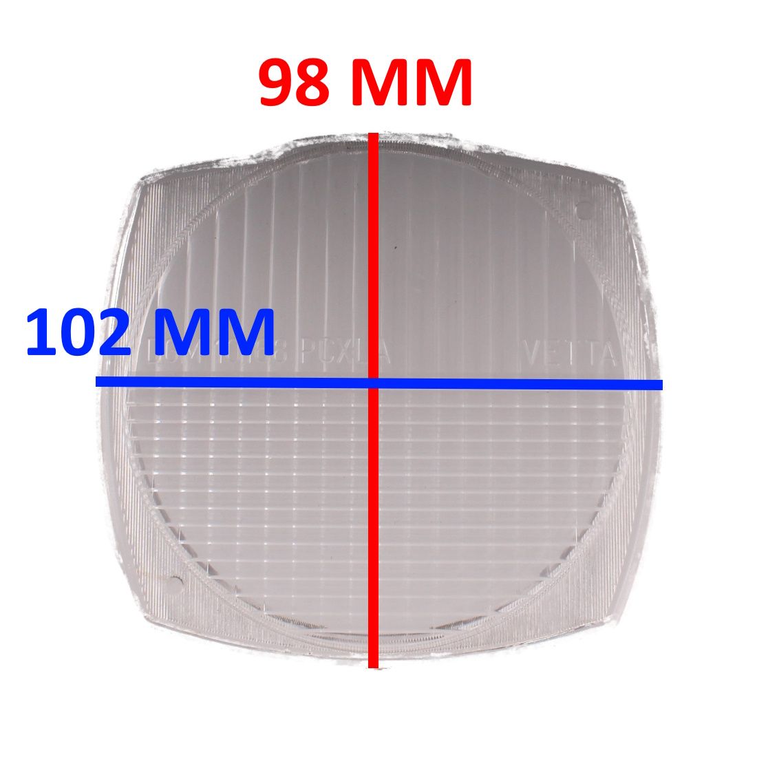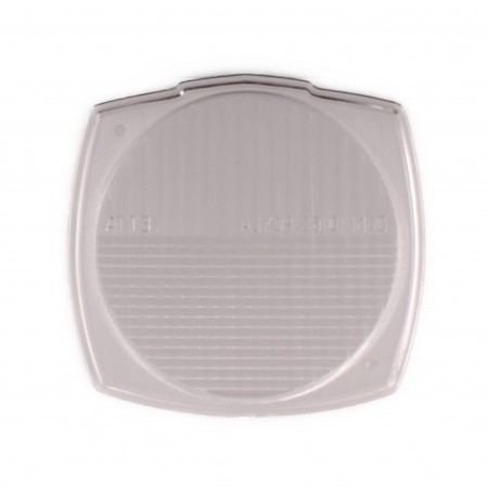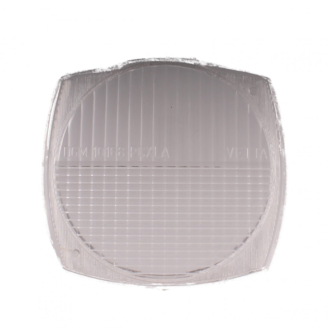 (R.17863) Vendo vetro fanale nuovo con leggeri segni di magazzinaggio per ciclomotori di cui non conosciamo il modello marchiato DGM 10168 PCXLA VETTA con altezza 98 mm e larghezza 102 mm ,su vari ciclomotori tipo Atala Califfo ecc. , per misure vedere foto