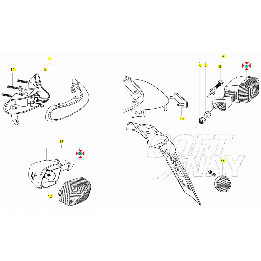 (R.22464) Vendo vetro della freccia posteriore con doppio incastro nuovo per Benelli 491 GT - 491 RR - 491 SP - 491 Sport - 491 ST - 491 Racing marchiato CEV 377 3378 R10W , Piaggio free e Liberty poste , per applicazioni e spaccato vedere foto