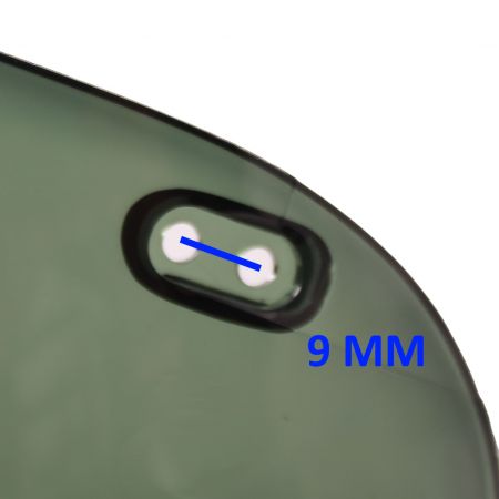 (R.23488) Vendo visiera casco nuova modello vintage verde scuro nuova con interasse fori di attacco 9 mm , per misure vedere foto