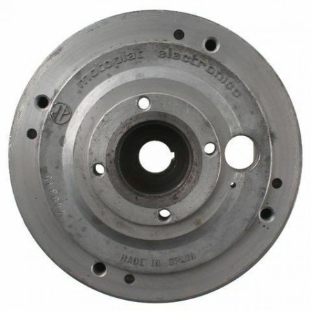(R.11612) Vendo volano nuovo con rotazione a sinistra per motori Minarelli marchiato Motoplat Electronico 449315 0611005 completo di ventola coprivolano marchiata Motori Minarelli