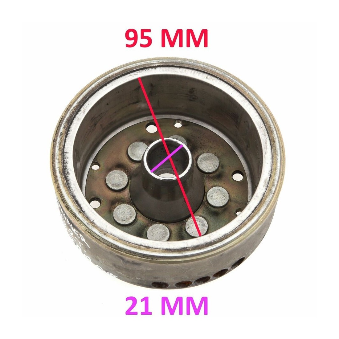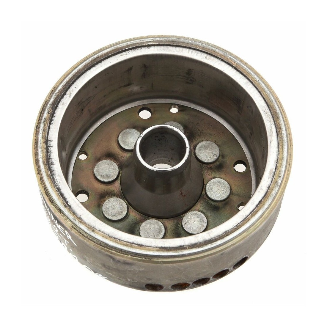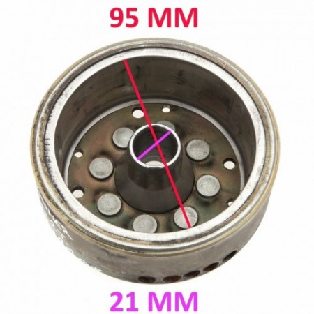 (R.824) Vendo rotore generatore usato per Gilera Runner FX - FXR 125 e 180 cc. a due tempi dal 1997 , Piaggio Hexagon 125 cc dal 1994 con codice Piaggio 293390 , per misure ed applicazioni vedere foto