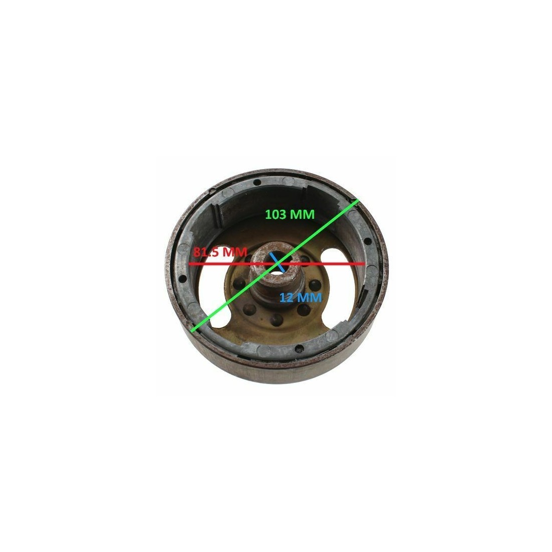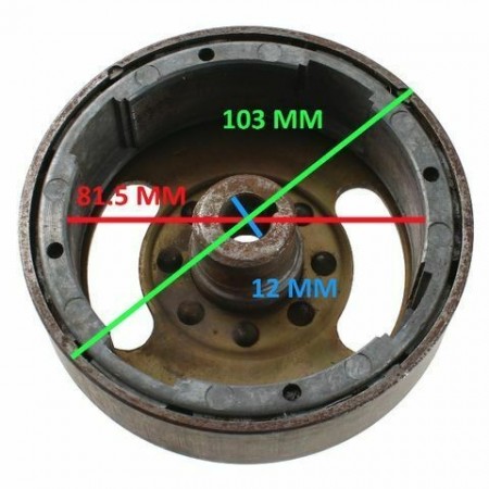 (R.12363) Vendo rotore generatore a 4 poli con rotazione sinistra usato per ciclomotori vari con motore Minarelli - Franco Morini - Malanca - Rizzato marchiato Dansi MSL 168 7936B/68 con diametro interno 82.5 mm e diametro esterno 103 mm , per misure vedere foto
