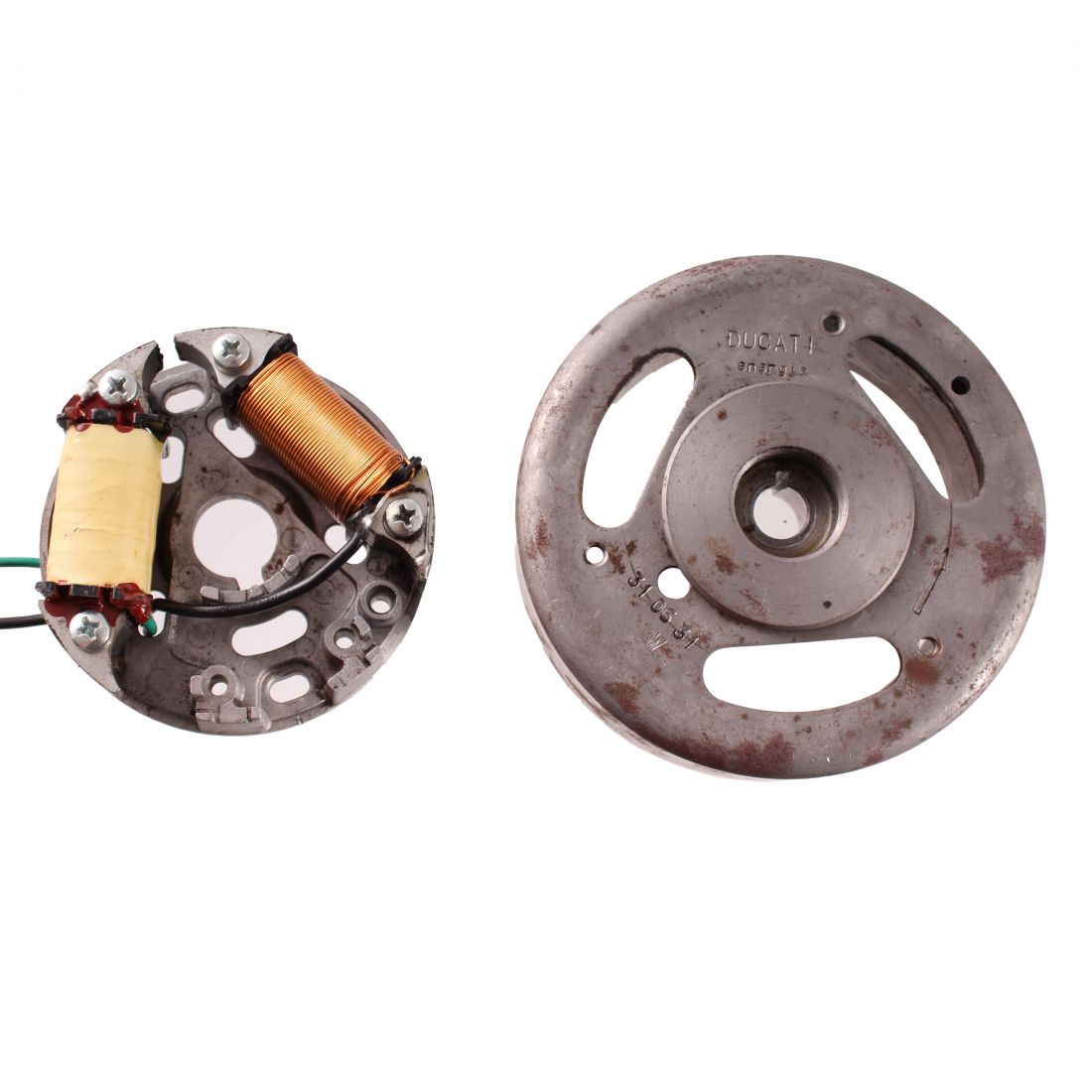 (R.24144) Vendo volano con statore elettronico usato marchiato Ducati Energia 310631 con rotazione sinistra