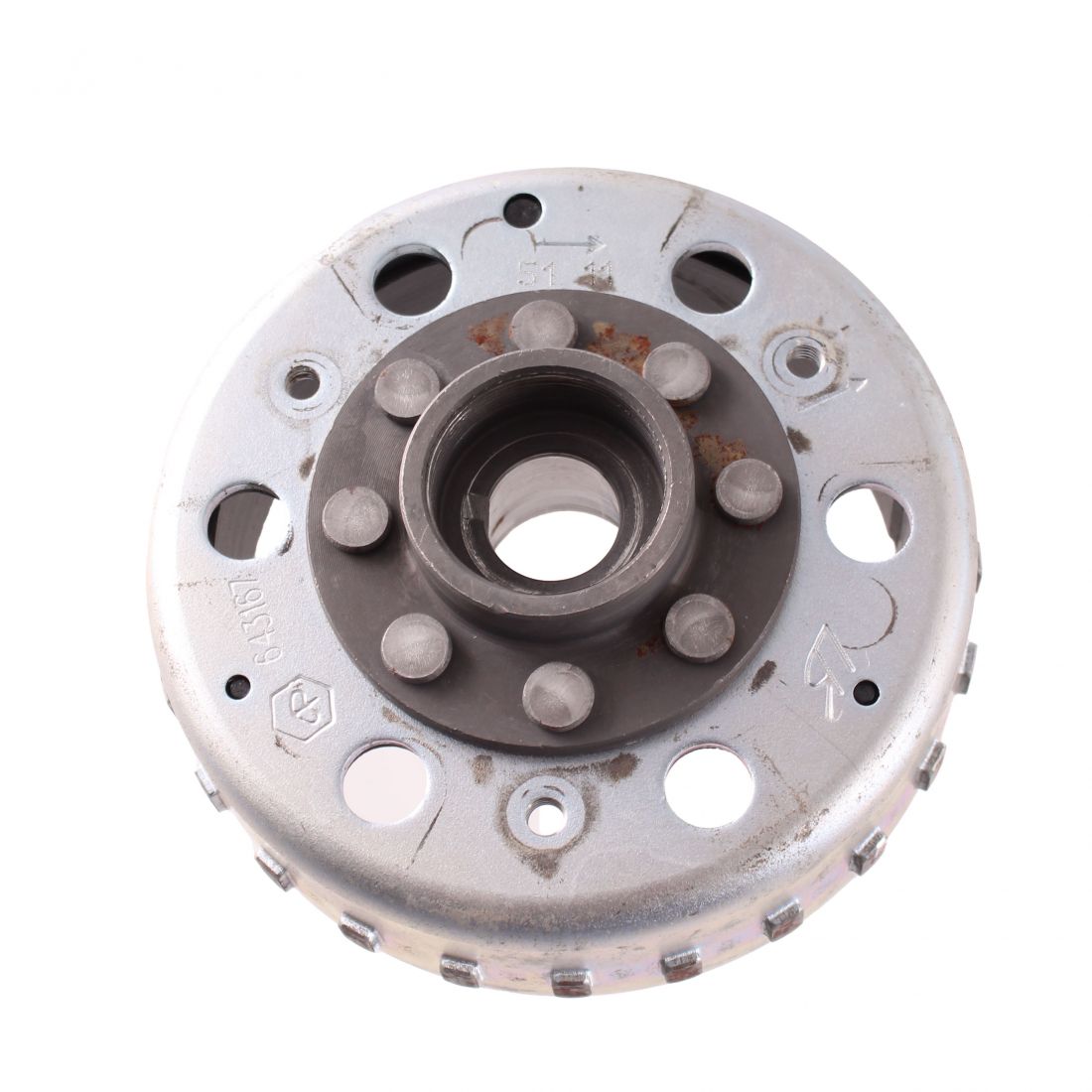 (R.24428) Vendo volano usato per Piaggio Liberty PTT 125 dal 2012 con diametro interno 85 mm, originale Piaggio con codice 643167 , con rotazione destra , per applicazione , misure e spaccato vedere foto
