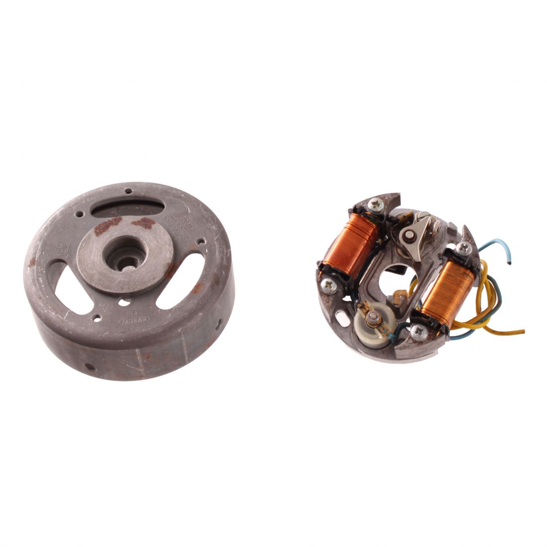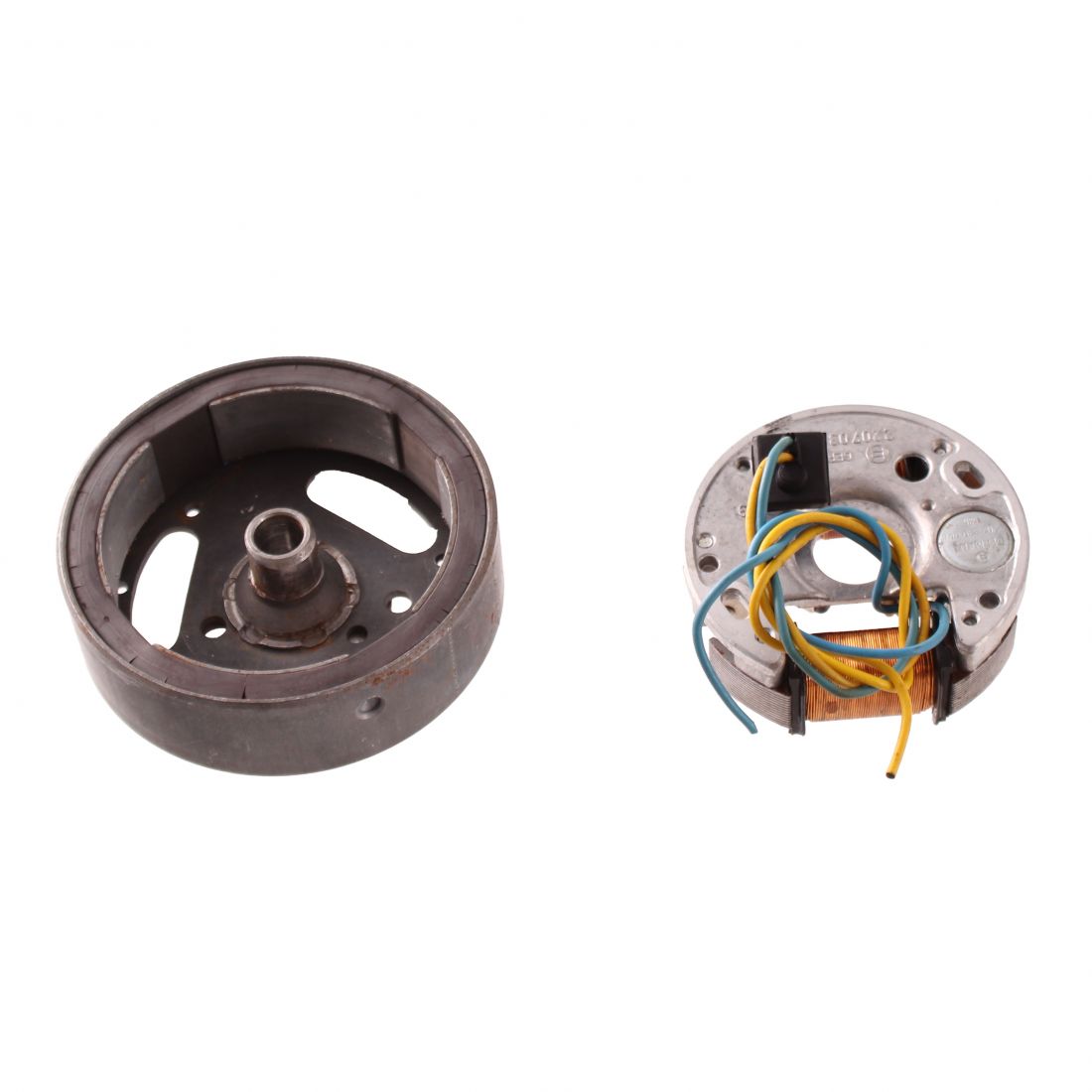 (R.24507) Vendo volano completo di statore usato marca Bosch con codice 0212009001 e marchiato 6 V 18 W , con rotazione sinistra