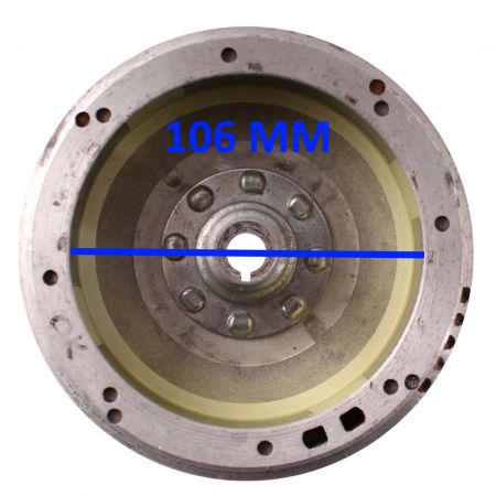 (R.24600) Vendo volano usato probabilmente per Ape 50 TL3 con codice Piaggio 2198523 con diametro interno 106 mm , per ,misure vedere foto