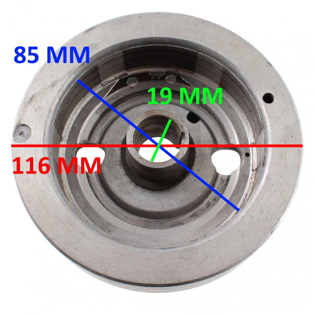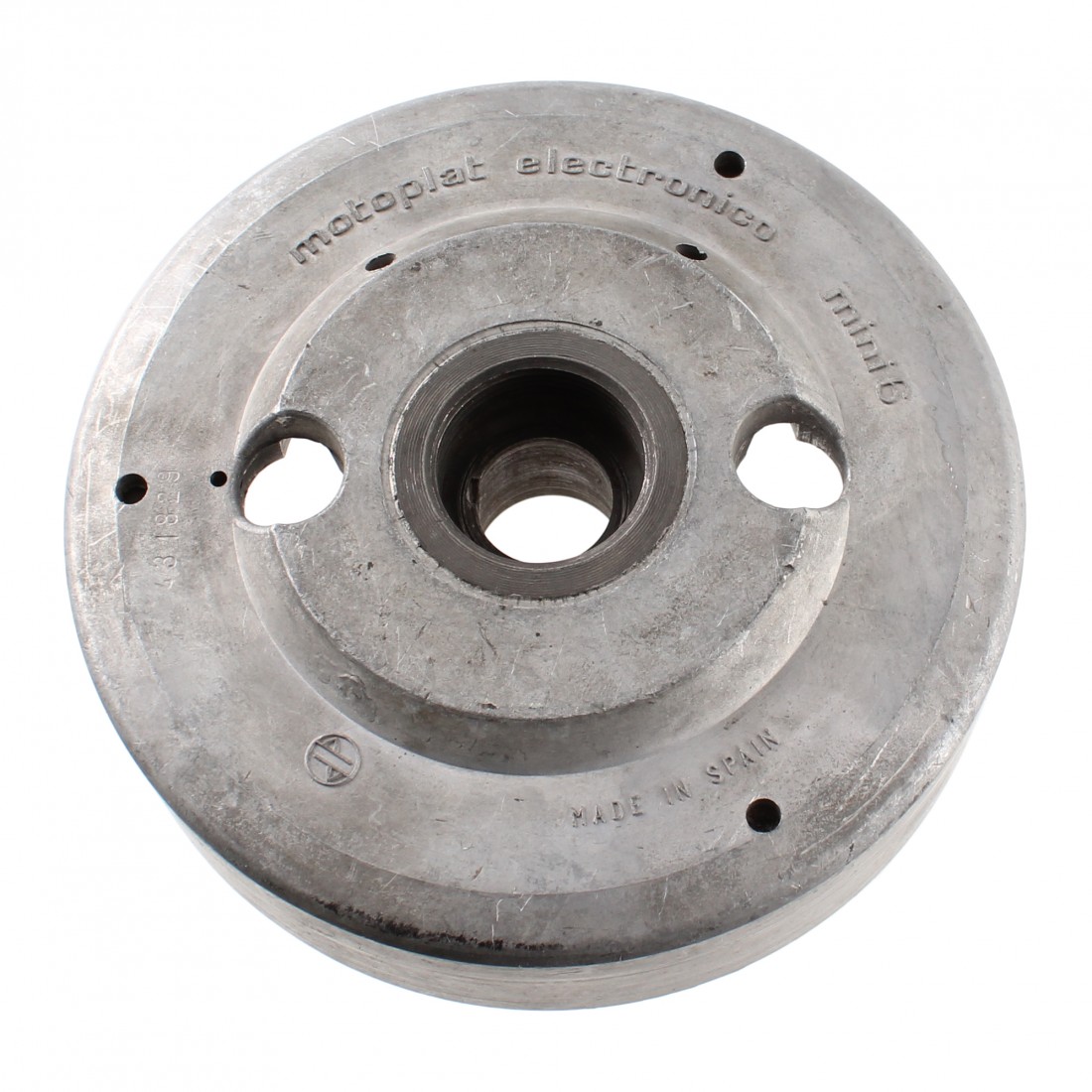 (R.13564) Vendo rotore generatore 6 Volt 21 Watt con rotazione destra in senso orario usato per moto varie epoca anni 70 e 80 tipo KTM MX 125 - KTM Penton 250 - Husqvarna marchiato Motoplat mini6 431829 9600166-1 6V35/5/21W42 con diametro interno 85 mm e diametro esterno 116 mm , per misure vedere foto