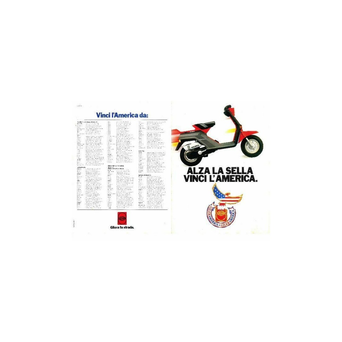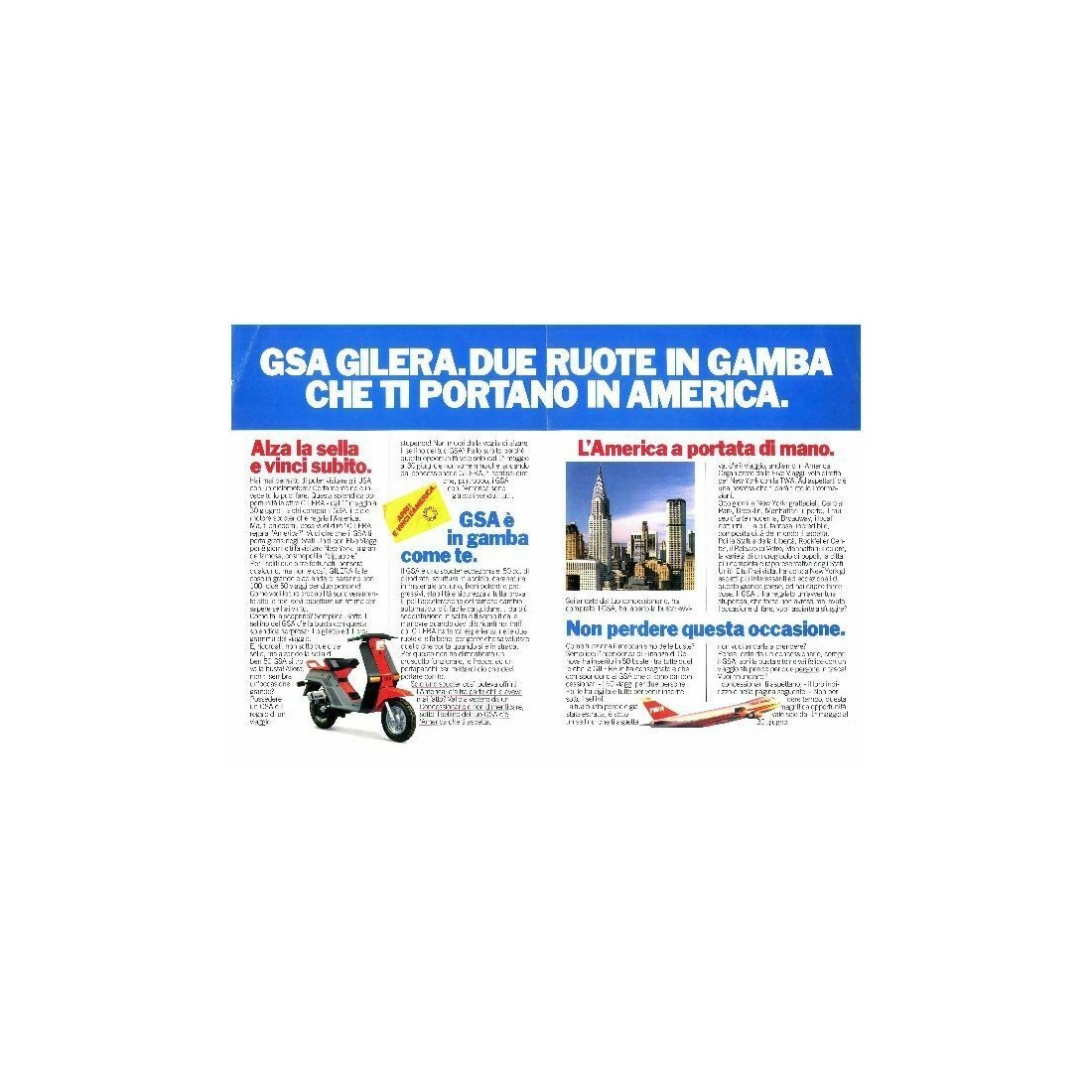 (R.8948) Vendo fascicolo pubblicitario vintage nuovo Gilera GSA con leggeri segni di immagazzinaggio , alza la sella e vinci l'america